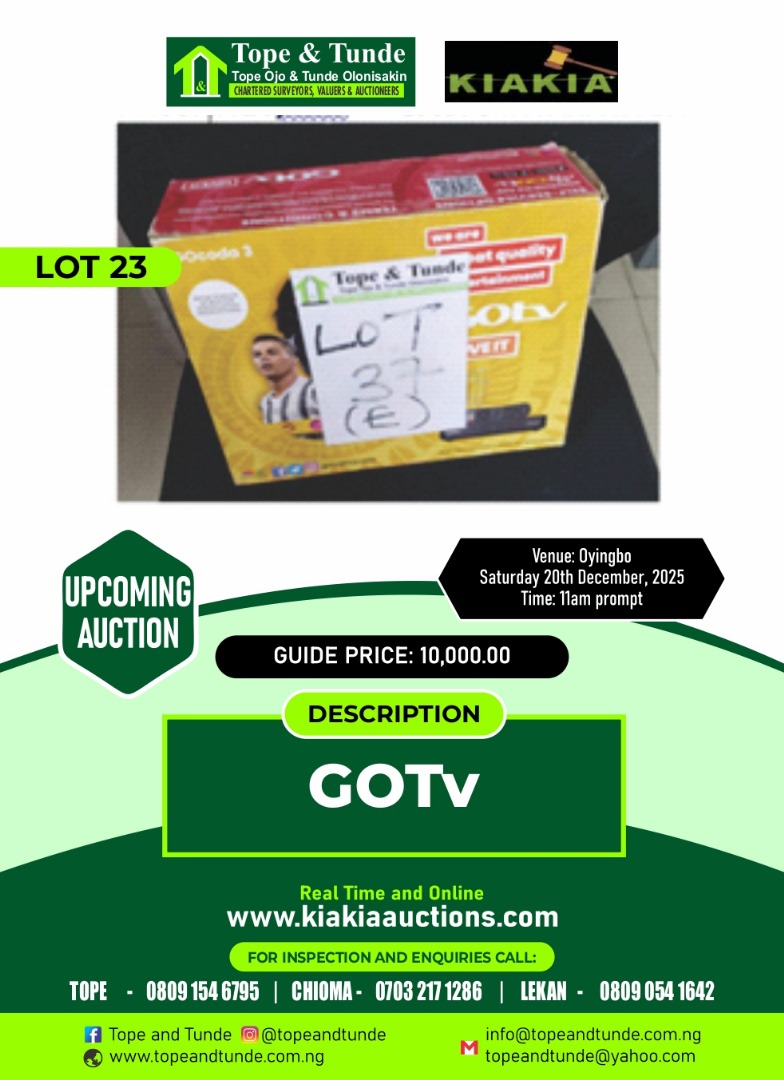 Kindly note that the GOTV will be picked, by the successful bidder.